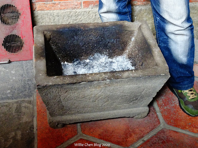 Preparing the incinerator stone to burn the medium paper to the ancestors