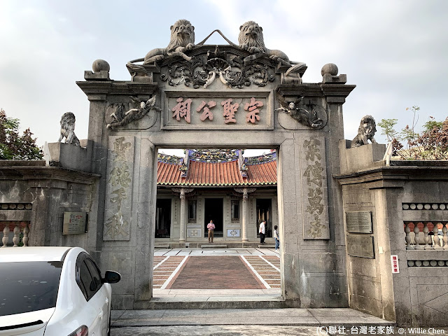 ▲聯社台灣老家族一起跟蕭珍記祭祀公業管理人蕭永忠兒子在蕭氏家廟前。 Taiwan Old Family enjoys an orientation of the temple and how it got restored by the Hsiao's descendant.